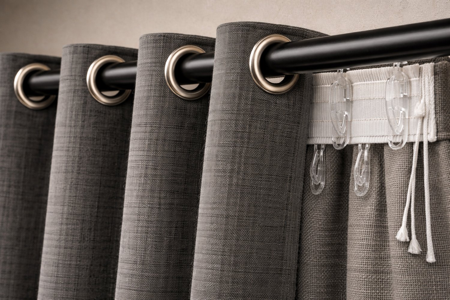 Универсальное решение с двумя типами крепления — шторная лента и люверсы в одном изделии. Позволяет менять способ навески без замены шторы — просто выберите вариант, подходящий вашему карнизу или настроению.